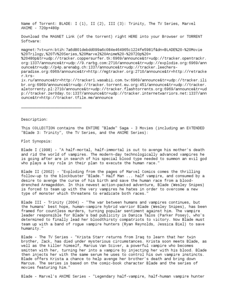 Blade Movie Trilogy The Series Marvel Anime 720p 480p